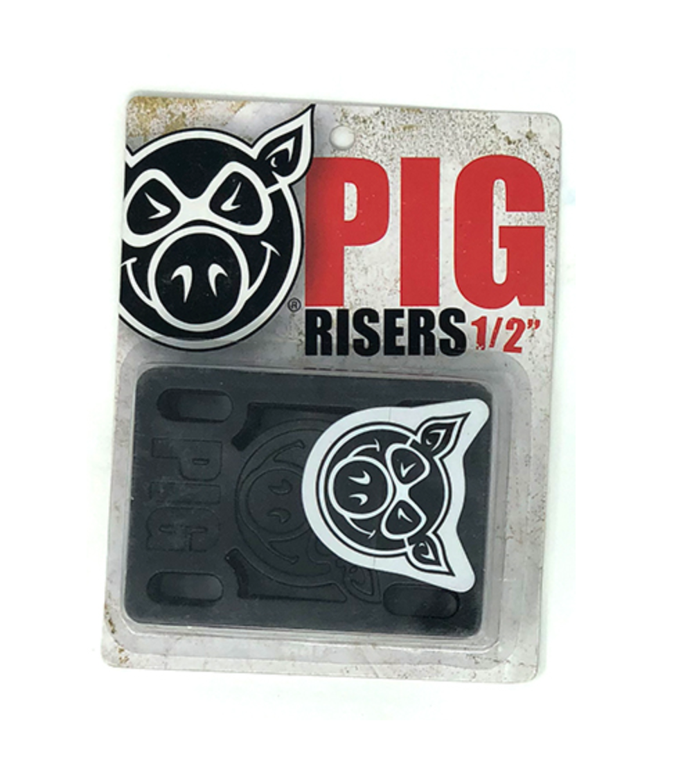 The Pig 1/2" Riser Pads are designed to be placed between your skateboard deck and trucks to raise the height of the trucks. This can help in preventing wheel bite (when the wheels touch the deck during sharp turns), allowing for smoother turns and providing additional clearance for larger wheels. These 1/2" risers are particularly useful for skaters who use bigger wheels or need extra room to prevent the wheels from rubbing against the deck. The risers are made from durable material to withstand the pressure and force applied during skating, ensuring a long-lasting performance. The Pig brand is known for its strong and reliable skateboard products.