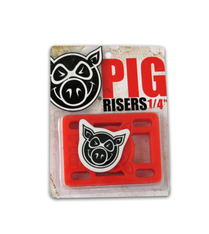 The Pig 1/4" Riser Pads are thicker riser pads designed to provide more clearance between your skateboard deck and trucks. With a 1/4" thickness, they help prevent wheel bite by raising the trucks slightly, allowing for larger wheels to be used or more aggressive turns without the wheels touching the deck. These risers are made from durable, high-quality materials, ensuring they can withstand the impact and forces experienced during skateboarding. Ideal for skaters looking to increase clearance, enhance their setup, or reduce stress on the deck from hard landings.