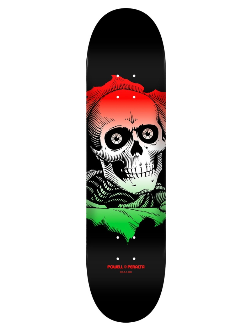 The Powell Peralta Team Ripper Green Fade Deck in 8.0” features the iconic Ripper graphic in a green fade design, delivering a classic, eye-catching aesthetic. Constructed with premium 7-ply maple, it offers durability and a solid feel underfoot. The deck has a medium concave (K20), providing a balance between a responsive ride and enough room for foot placement, ideal for both street and park skating. Its 31.45” length and 14” wheelbase give it stability while allowing for versatile trick performance. Perfect for skaters who want a timeless look combined with reliable performance, available now at Stamford Skate Shop for dedicated skaters and collectors alike