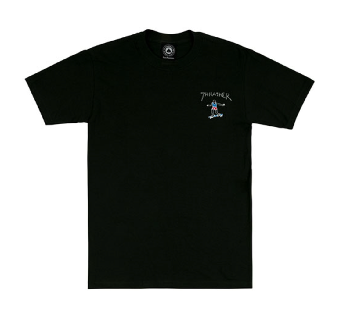 Keep it classic with a twist. The Thrasher Gonz Mini Logo Tee in black features legendary art by Mark Gonzales—small, subtle, and iconic. Printed on a soft, durable short sleeve tee, this shirt blends skate heritage with everyday comfort and clean style.