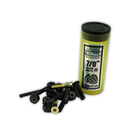 The THUNDER Hardware 7/8" Allen set provides durable, high-quality screws designed for a secure fit. These 7/8" Allen screws are ideal for attaching your skateboard trucks to the deck, offering a tight hold and reliable performance for skaters who demand precision and strength in their gear. Perfect for any setup.